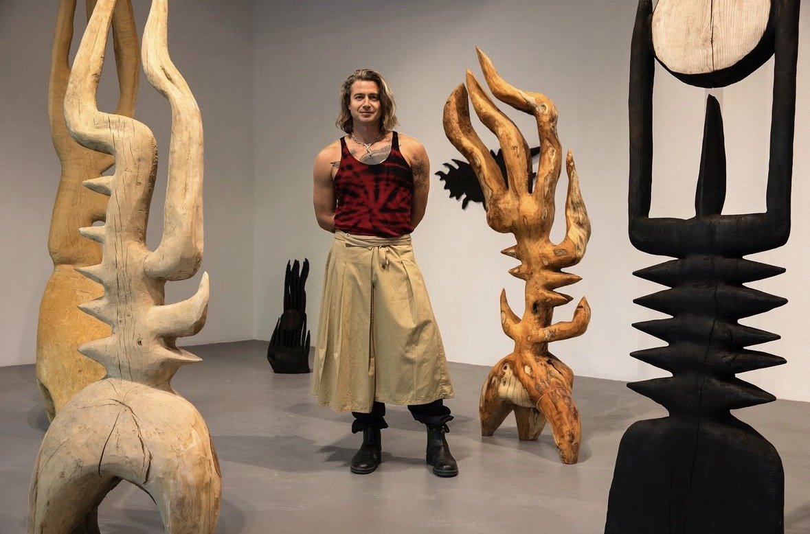 Bailey Barker’s work is deeply informed by his own near-death experience as a child, which left him in a coma for months. This encounter with mortality has shaped his artistic vision, imbuing his sculptures with a sense of transformation, survival, and reverence for the natural world. Situated within the realm of Ancient Futurism, his work merges indigenous knowledge with modern technologies to create new blueprints for environmental sustainability, social justice, and community development.